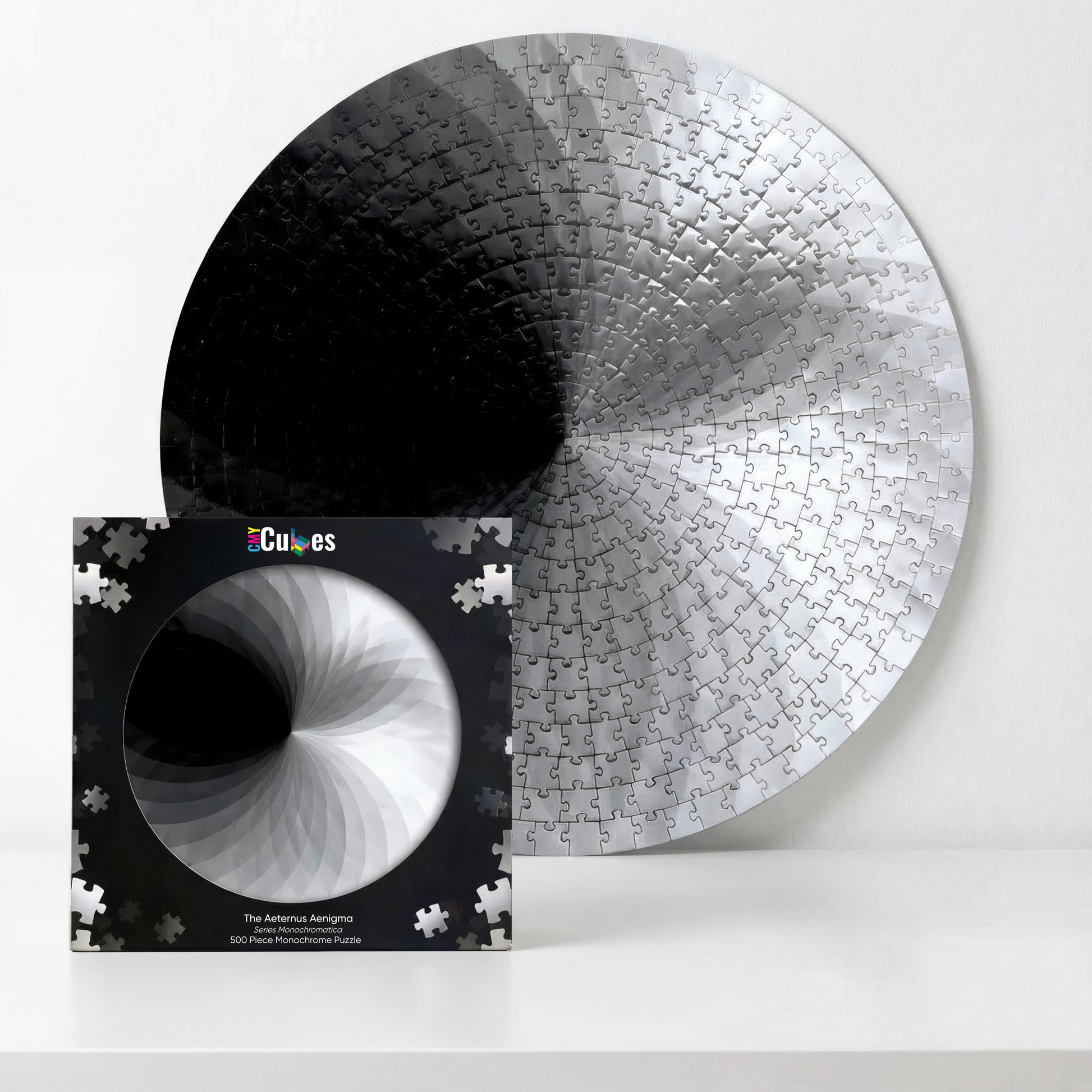 This NEW lenticular monochrome edition of the Aeternus Aenigma removes colour entirely, creating a sharper and more demanding puzzle built on contrast, structure, and perception. Unlike traditional puzzles with a single visual outcome, every piece in the Aeternus Aenigma Series Monochromatica contains four distinct monochrome states that shift and transform as the puzzle is rotated.